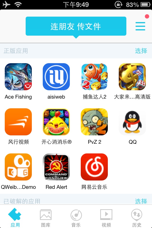 "Kuaiya" 2.5.5 is a jailbreak application for iOS 5.0 or higher system versions, supporting 32-bit devices and applications for use on iPhone and iPad. This is an efficient and convenient cross-platform file transfer tool that does not rely on the network or data cables, and realizes high-speed transmission between phones through Wi-Fi direct connection or hotspot. Whether it's photos, videos, music, apps, or documents, they can be quickly shared in a few seconds to minutes. The interface is simple and intuitive, easy to operate, especially suitable for users of older Apple devices to transfer data without network. In addition, this version has been optimized for older iOS systems, runs stably, consumes low resources, greatly improving the transmission efficiency and user experience. Friends who are interested are welcome to download and install from iOSIPA Software Network, enjoy the fun of fast file sharing.