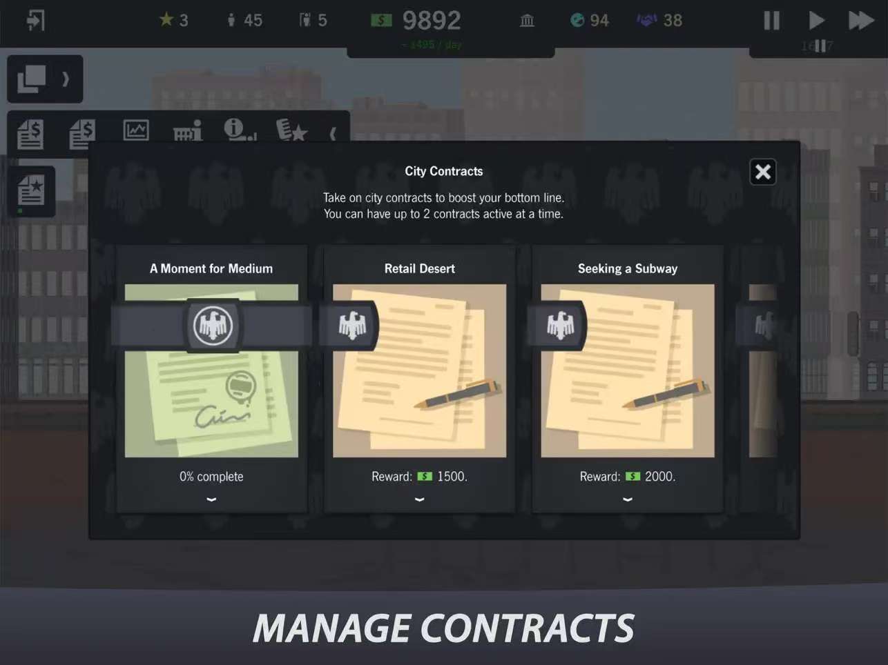 "Building Manager" 101 is a jailbroken application for iOS 8.0 or higher system versions, supporting 64-bit, and is an application only compatible with iPad. This is a highly strategic simulation management game where players take on the role of a building manager responsible for planning, constructing, and operating a multi-functional comprehensive building. From leasing merchants, managing staff to dealing with unexpected events, every decision will affect the building's revenue and reputation. The game features exquisite graphics, smooth operation, and integrates elements such as resource allocation, time management, and economic strategy, providing an immersive urban management experience. As the floors continue to expand, you will unlock more commercial formats and upgrade options, challenging higher management goals. Whether you like simulation construction or strategic planning, players can find fun in "Building Manager". Friends who are interested are welcome to download and install it from iOSIPA Software Network.